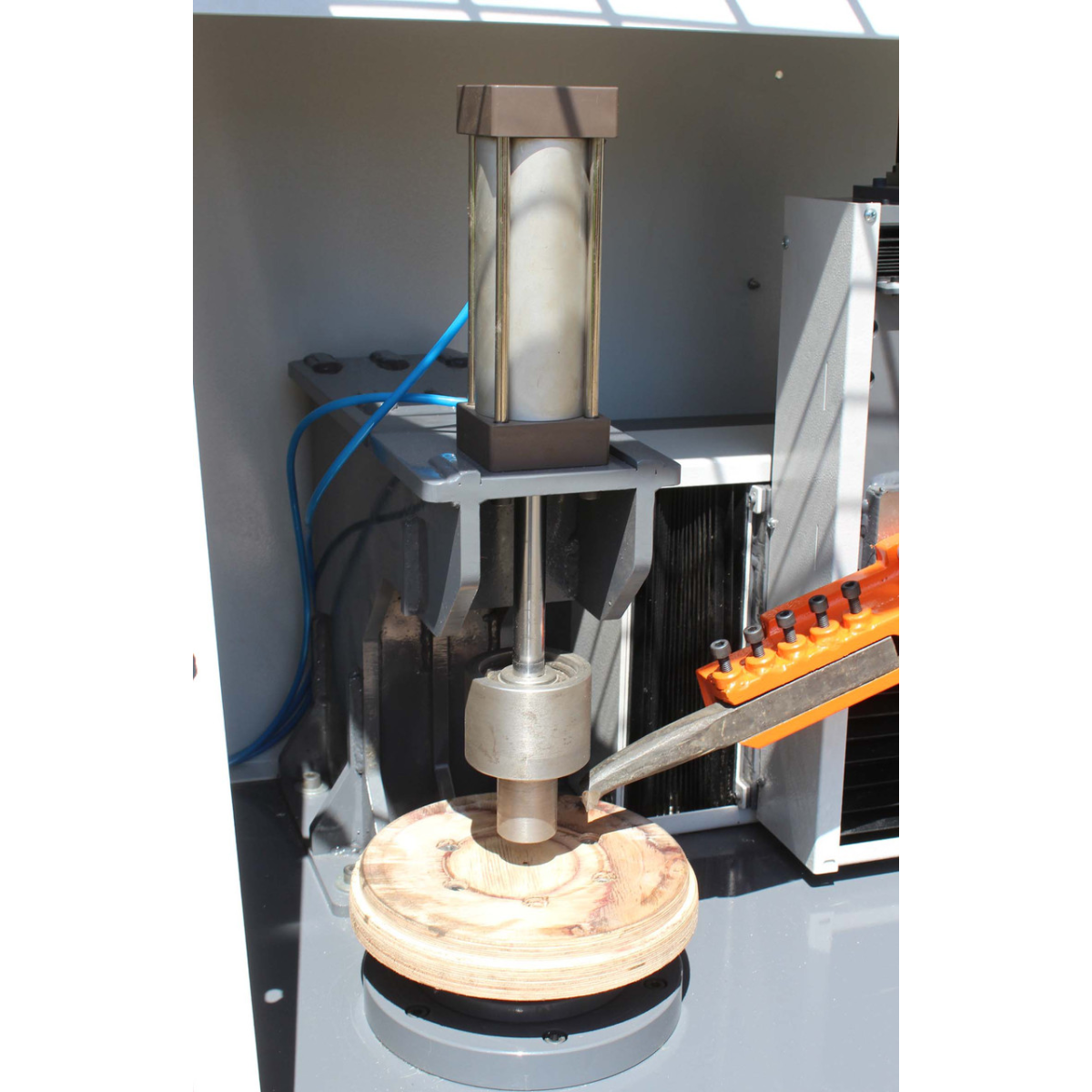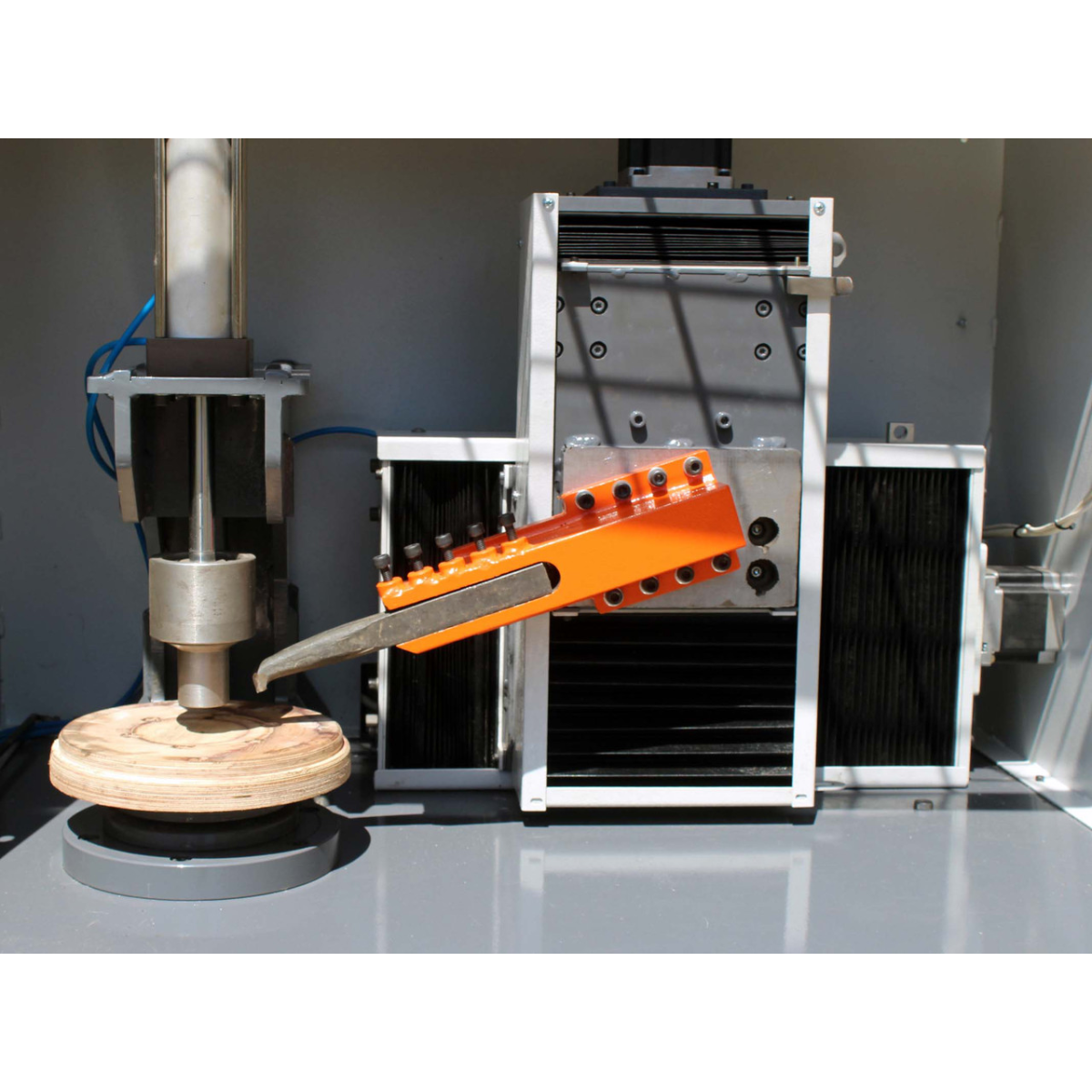 СФС - верстат токарний за алюмінію для сковорідок СТ - приводні двигуни — крокові, напрямні — профільні М - Механічне кріплення заготовки на столі Ш - Привод за допомогою ШВП ОПИС: Цей верстат розроблений для проточування днищ алюмінієвих сковорідок, отриманих литтям. Живлення обладнання від трифазної мережі з напругою 380 В. Верстат виготовлений на зварній, обробленій фрезеруванням станині, обладнаний профільними напрямними та кулько-гвинтовими передачами, захищеними від потрапляння пилу та стружки. ОБЛАСТ ЗАСТОСУВАННЯ: - виробництво посуду. — однотипні операції плоскосічного точування. Керування й позиціювання Система керування NC-Studio 5 Дискретність позиціювання, мм 0,05 Точність позиціювання, мм 0,1 Неперпендиклярність осей, мм/м ±0,2 Число керованих осей 2 Швидкість холостих переходів, м/хв ≤6 Швидкість фрезерування, м/хв ≤4 Робоча зона та габарити Максимальний діаметр заготівки, мм 400 Максимальна висота заготівки, мм 100-200 Ширина × Довжина × Висота верстата, м 1,3×1,3×1,3 Маса ± 50%, кг 450 Механіка Тип станини Зварена з товстостінної труби Кріплення заготівки Пневматична (Циліндр з обертовим центром) Тип привода X/У/Z ШВП Hiwin 25х5 (Тайвань) Напрямні Х/У/Z Hiwin HGR 25 (Тайвань) Захист напрямних Х/У/Z Встановлена Електроніка Приводні двигуни Крокові Motion King 4,6 Н×м (54) Датчики осей Індуктивні Двигун приводу заготовки Асинхронний, 4 кВт Комп“ютер Не комплектується. Надається замовником Постачання й оплата Вартість (без шпинделя), у.е. 6000 Термін виготовлення, робочих днів 50 КОМПЛЕКТНІСТЬ ПОСТАВКИ: 1. Верстат — 1 шт. 2. Блок керування, з“єднаний зі верстатом — 1 шт. 3. Притискачі механічні — 4 шт. 4. Цанга для шпинделя — 1 шт. 5. Ключі для затискача фрези — 2 шт. 6. Плата керування NC-Studio 5, встановлювана в PCI-порт комп“ютера — 1 шт. ДОКУМЕНТИ ДО СТАНКУ: 1. Паспорт. 2. Гарантійний талон. 3. Витрата накладна. ПАРАМЕТРИ ПК, НЕОБХОДИМОГО ПОКУПАТЕЛЮ: 1. Процесор не менш ніж Pentium 4, 1600 МГц. 2. Обов“язкова наявність PCI — порту. 3. Об“єм жорсткого диска не має значення. 4. Обсяг оперативної пам“яті 4 Гб. 5. Рекомендована операційна система — Windows XP 32 bit. МОНТАЖ: 1. Забезпечити надійну бетонну основу під верстатом. 2. Виставити верстат за рівнем, відносно підлоги. 3. Закріпити верстат до підлоги анкерами (розташування на віброопорах не допускається). ЗМАЗКА: 1. Використовувати чистий солодол або Addinol. 2. Змащувати що 72 години роботи верстата або на розсуд оператора. ПІД“ЄДНАННЯ: 1. Напруга: трифазна, 380 В, 50 Гц. 2. Піднесений до верстата дріт — мідний ПВС 4х2,5. 3. Підвести повітря трубкою ПВХ 10 мм. 4. Встановити насос для подавання СОЖ.