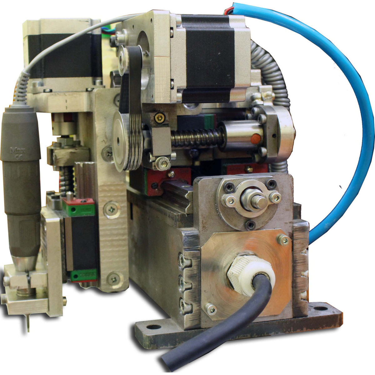 Верстат розроблений і виготовлений для нанесення гравіювання у важкодоступних місцях виробів, наприклад, нанесення серійних номерів безпосередньо на станини обладнання. Верстат має магнітне кріплення й може не фіксуватися додатково на сталевих поверхнях.