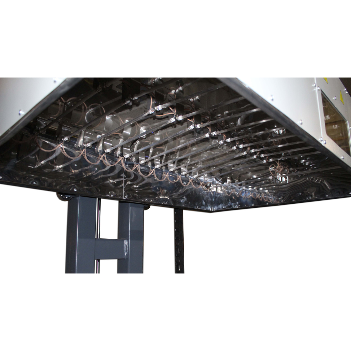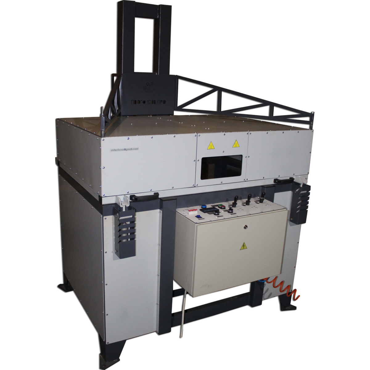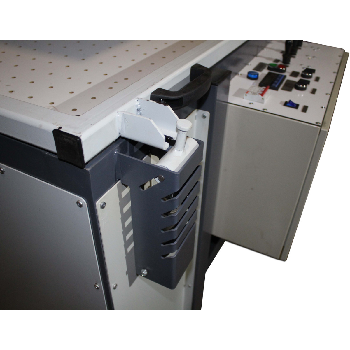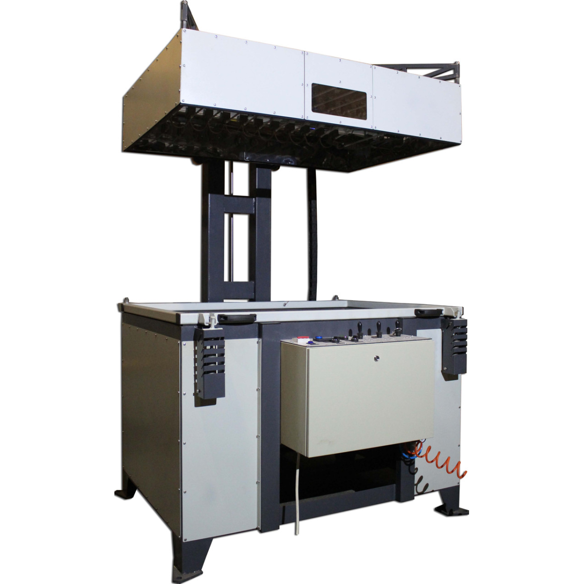 Як нагрівальні елементи застосовуються інфрачервоні лампи. Внутрішня поверхня нагрівальної камери обшита неіржавким полірованим листом, що забезпечує Підіймання нагрівальної камери, потужність якої становить 10 кВт також підіймається за допомогою пневматичних циліндрів. Фіксація притискної рамки здійснюється вручну, за допомогою механічних притискачів.
