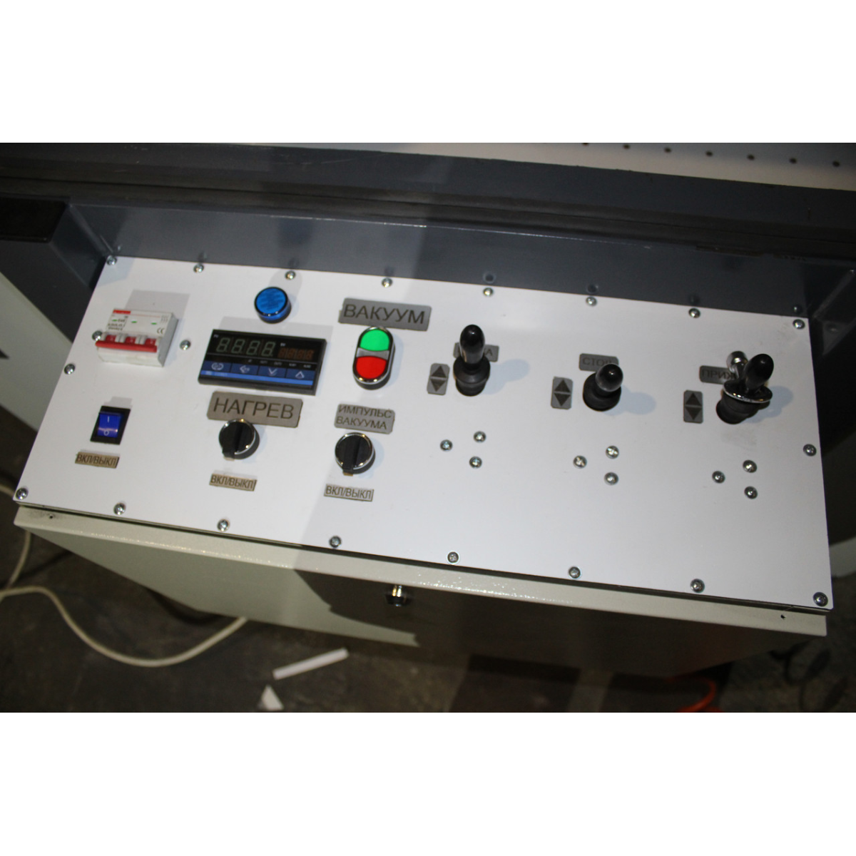 Цей прес призначений для облицювання меблевих фасадів, як плоских, так і радіусних (гнутих) плівками ПВХ. Обладнання укомплектоване молочною силіконовою мембраною, що дає змогу зробити шпонування, а також виготовити й облицювати гнутий фасад. Матеріал робочого стола — МДФ.