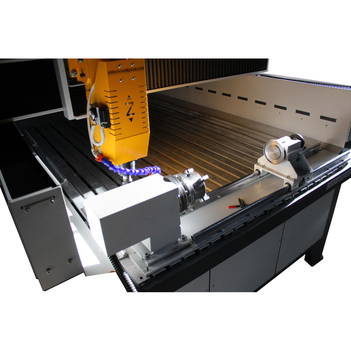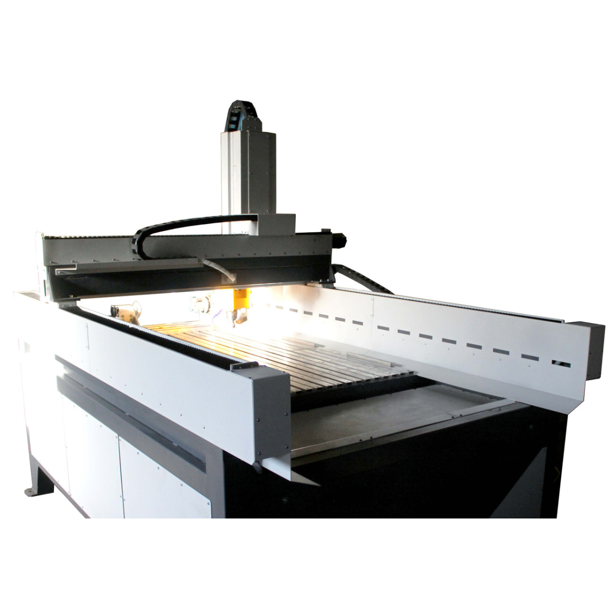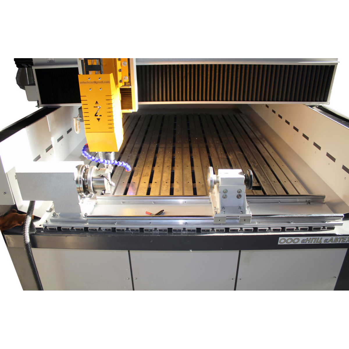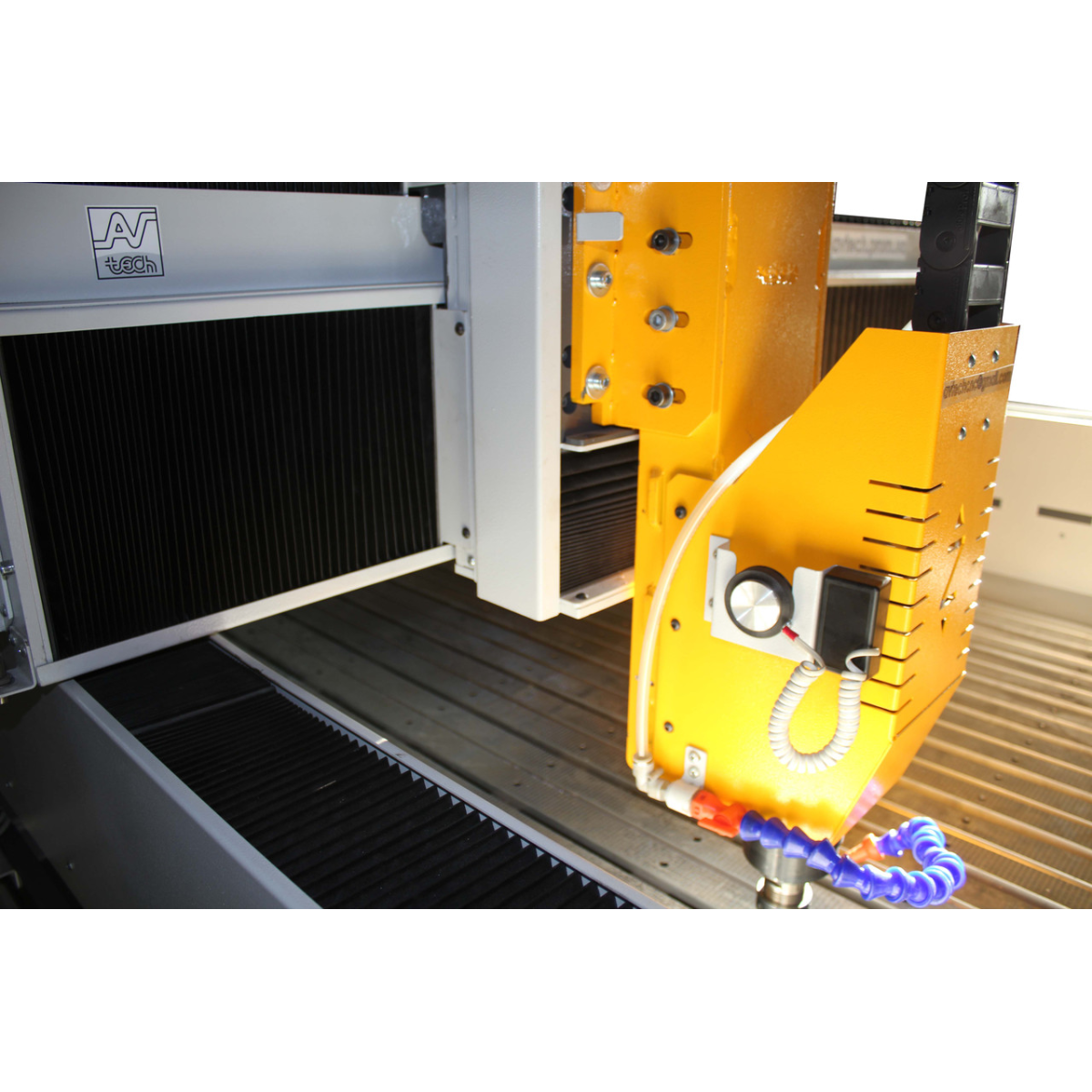 Цей деревообробний фрезерний верстат із числовим програмним керуванням (ЧПУ) дає змогу з високою точністю фрезерувати деталі із пластиків, МДФ, деревини різних порід. Верстат однаково просто справляється з об“ємною різзю на дереві та криволінійним розкроємом матеріалів. Заготівка тримається на столі за допомогою механічних притискачів. Розташування притискачів визначається залежно від вимог замовника. Станина верстата виготовлена з товстостінної профільної труби, після чого оброблена струганням для досягнення найбільшої, можливої, точності роботи верстата. Гвинти за осями Х і У натягнуті для зменшення рівня коливань. Можлива комплектація верстата поворотним пристроєм, який можна під“єднати як замість однієї з координат, так і як додаткова координати.