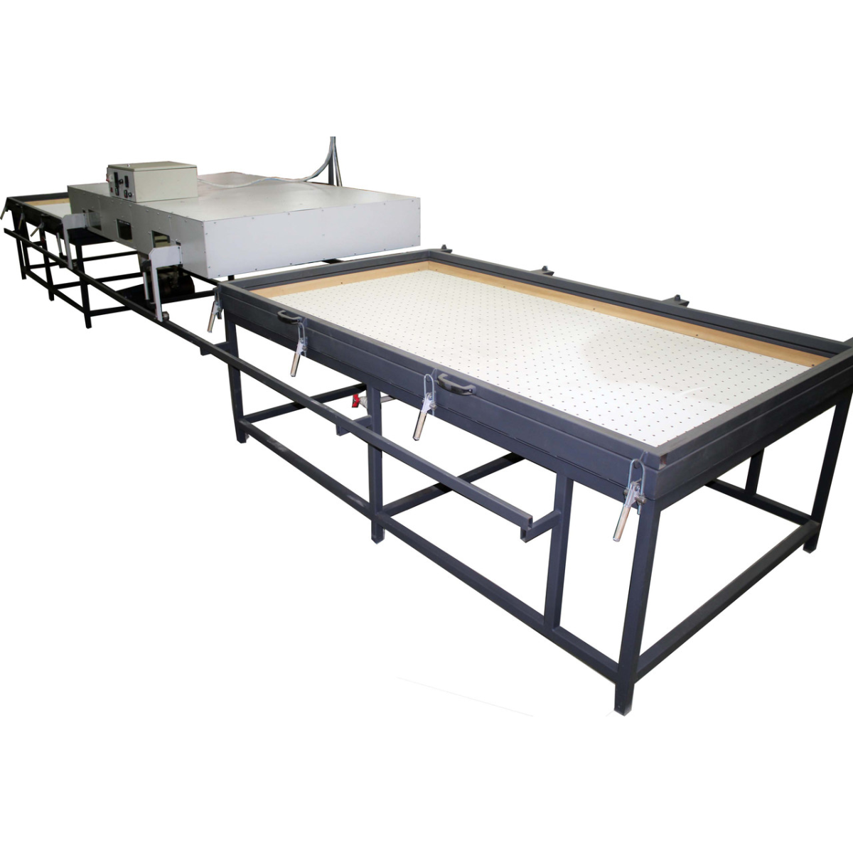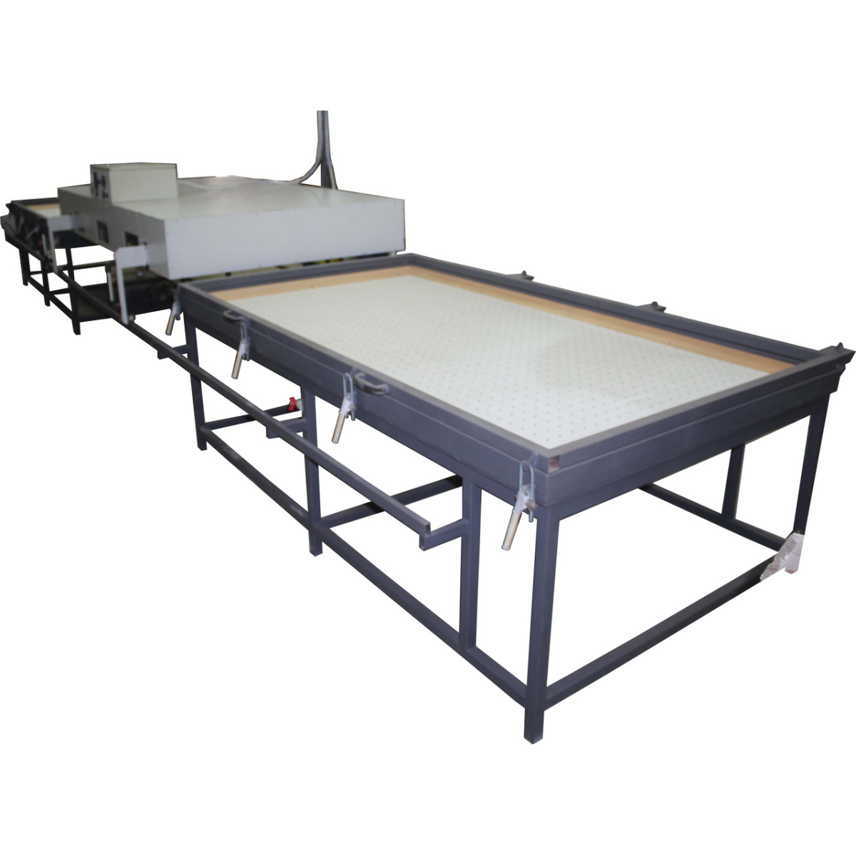 ПВО – Прес Вакуумний Облицювальний 2514 – Максимальний розмір затискної плівки. х2 — Преси цієї серії виготовлені з двома робочими столами та рухомою нагрівальною камерою. Прес вакуумний задовольнить більшість споживачів, оскільки поєднує в собі високу надійність і наявність усіх функцій, необхідних для повноцінної роботи. Предназначен для облицювання меблевих фасадів плівками ПВХ. Під час встановлення силіконової мембрани дає змогу обклеювати поверхні шпоном, а також виготовити гнутий фасад. Максимальний розмір обклеюваної деталі 2300х1200 мм. Максимальна висота гнутого фасаду 250 мм. В середньому час закладання плівки в цей прес на 30 % менше, ніж у попередніх серій, що перевірено серійним виробництвом. Особливості конструкції: - Матеріал робочого столу — МДФ. - Як нагрівальні елементи застосовуються інфрачервоні лампи. Потужність нагрівальних елементів становить 30 кВт. - Підіймання нагрівальної камери здійснюється за допомогою пневматичних циліндрів. - Підйом і змикання притискної рамки здійснюється вручну, за допомогою механічних притискачів в кількості 5 шт. - Як ущільнювач вакуумної зони використовується силіконовий термостійкий профіль. - Нагрівальна камера зсередини обшита полірованою неіржавкою сталлю, яка має більш високі відбивні властивості та не змінює їх згодом. - Оглядові вікна — загартовані, щоб уникнути пошкодження під час нагрівання. - Нагрівальна камера підіймається строго вертикально, що забезпечує вільний доступ до всієї поверхні столу під час закладання плівки, а також перешкоджає погіршенню властивостей нагрівальних елементів. - Притискна рамка підіймається по довгій або короткій стороні, залежно від бажання замовника. - Рівень розрідження, створюваного вакуумним насосом, становить -0,85 атм і контролюється електроконтактним вакуумметром. - Продуктивність вакуумного насоса 40 м3/год. Для роботи з пресом Вам знадобиться лише 3х фазна мережа та компресор для підіймання печі, Навчання роботи на верстаті та базовим знанням за написанням програм керування, що здійснюються на території виробника, є безплатним і обов“язковим. Термін виготовлення залежить від завантаження виробництва та коливається від 2 до 6 тижнів. На все обладнання надається гарантія терміном 12 місяців із дня відвантаження та підписання відповідних накладних. Оплата проводиться в національній валюті України — гривні за рахунком-фактурою. Форма розрахунків — безналічна. Доставка обладнання здійснюється завдяки замовнику на умовах Incoterms EXW. Продавець вважається виконавцем свого обов“язку щодо постачання товару з моменту передавання його Перевізнику, зазначеного Покупцем, у пункті, де товар був зроблений або зберігся (фабрика, завод, склад Продавця). З цього моменту покупець має нести всі витрати та ризики втрати або пошкодження товару. На покупцях надається обов“язок із виконання всіх митних формальностей. Можливе надання допомоги в організації перевезення. Ознайомитися з процесом затягування плівки можна на наступному відео Ознайомитися з конструкцією преса можна на наступному відео